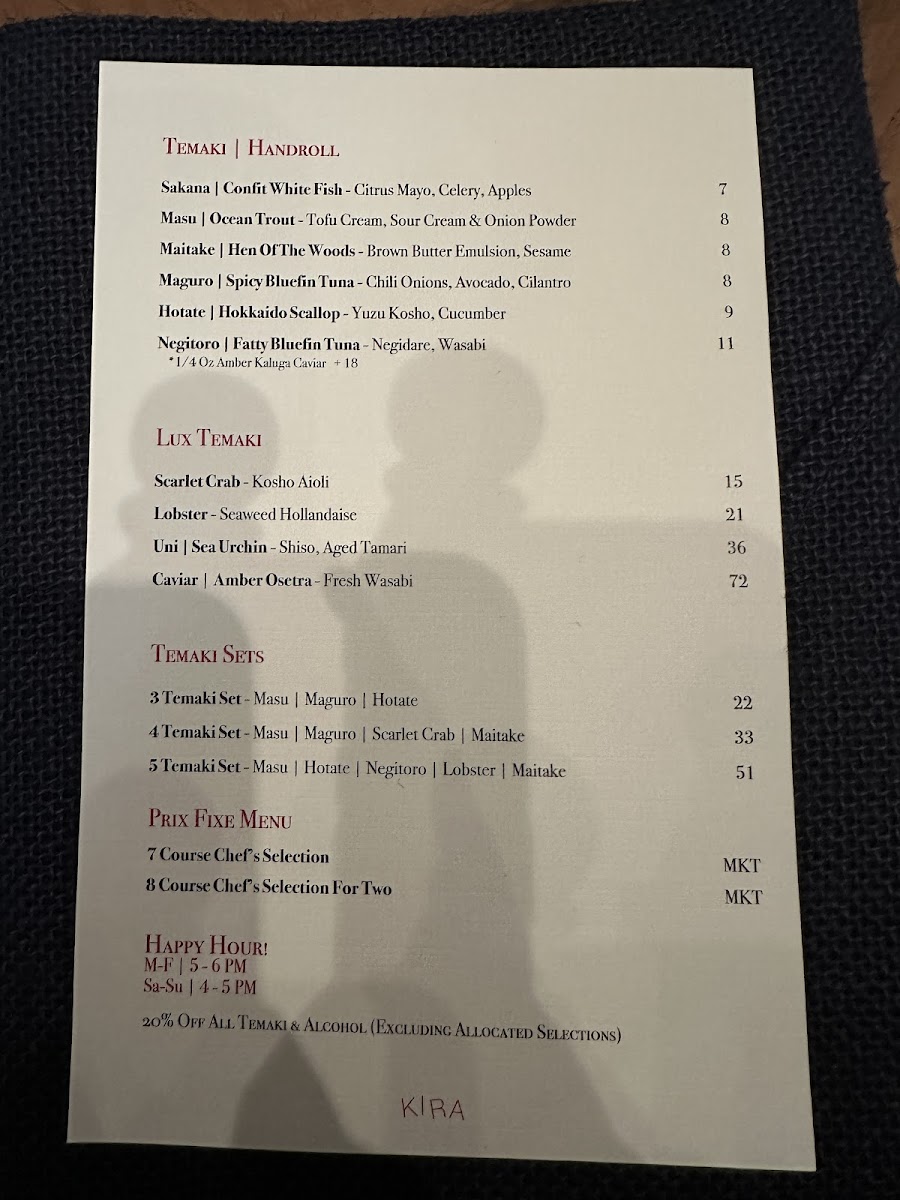 Welcome to Kira - Houston, a hidden gem located in the heart of River Oaks. This intimate sushi haven offers just 15 seats, making reservations essential for food enthusiasts eager to experience their unique menu. Kira specializes in handrolls and donburi, with standout items like the A5 Wagyu donburi and mouthwatering handrolls filled with fresh fish, such as Maguro and Hotate.
